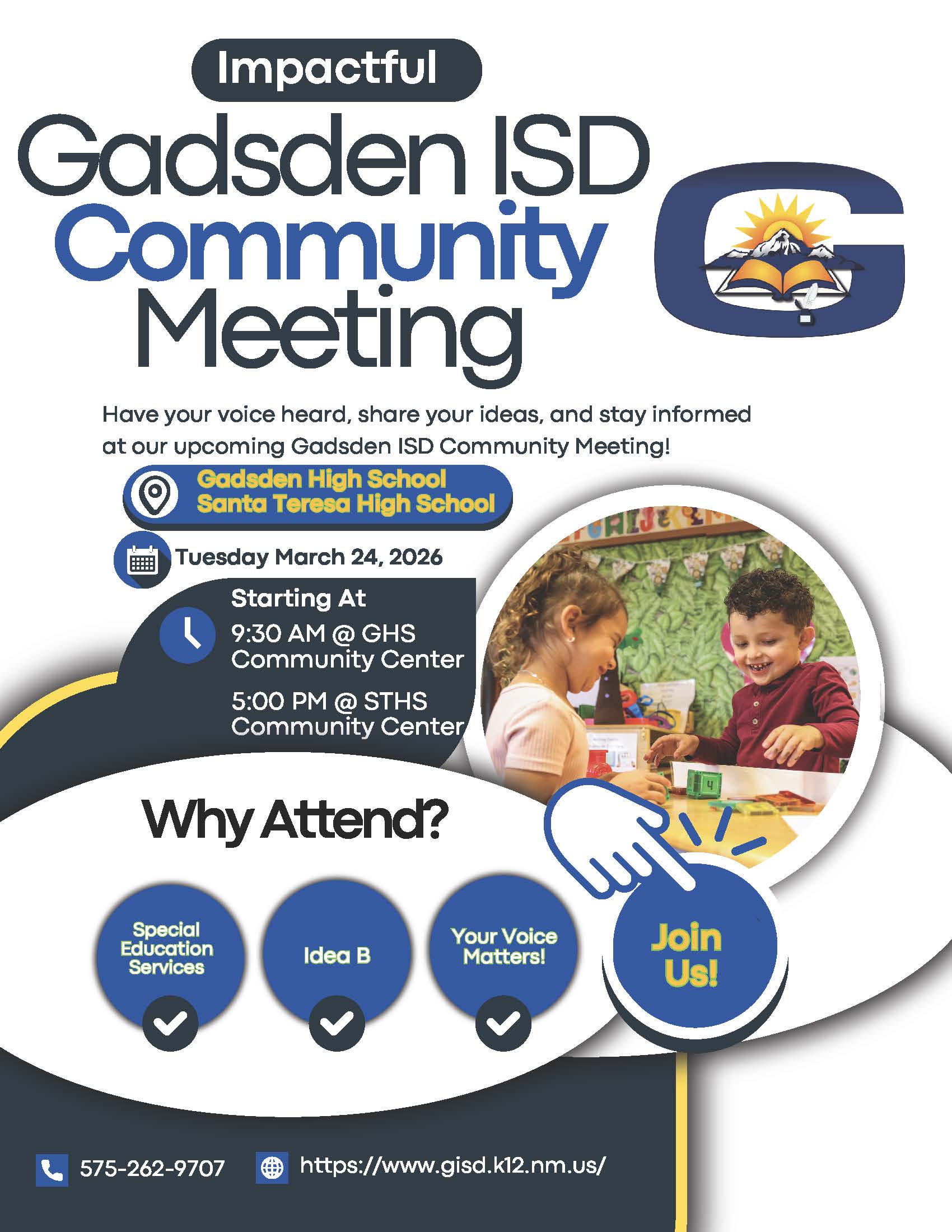 “At Gadsden Independent School District, our commitment to academic excellence drives everything we do. We strive to create an inclusive and supportive learning environment where every student is empowered to succeed. Through innovation, dedication, and a focus on individual growth, we ensure that all students have the tools and opportunities they need to reach their full potential.”